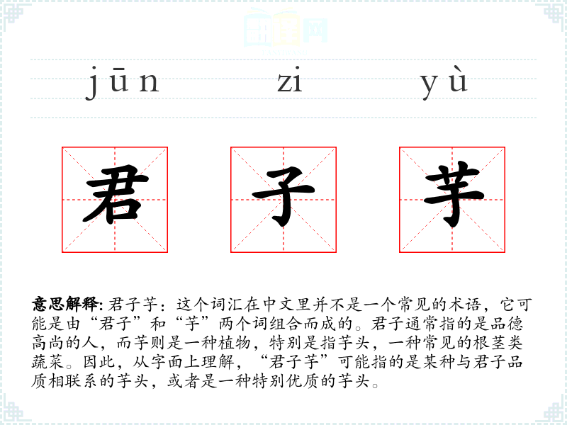 由于“君子芋”不是一个常见词汇,它在不同语言或文化中的对应词汇及其使用情况不太清楚。