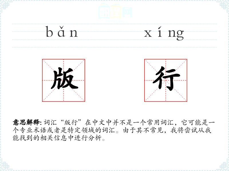 词汇“版行”在中文中并不是一个常用词汇,它可能是一个专业术语或者是特定领域的词汇。由于其不常见,我将尝试从我能找到的相关信息中进行分析。