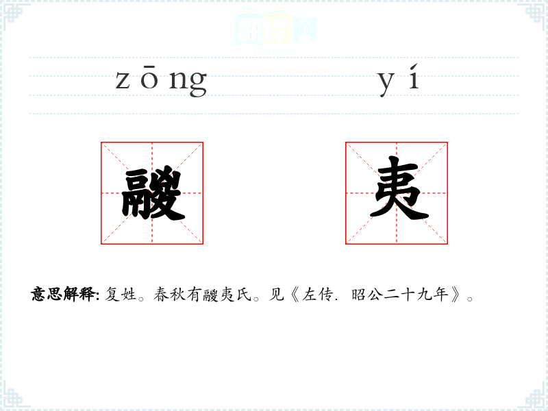 复姓。春秋有鬷夷氏。见《左传.昭公二十九年》。