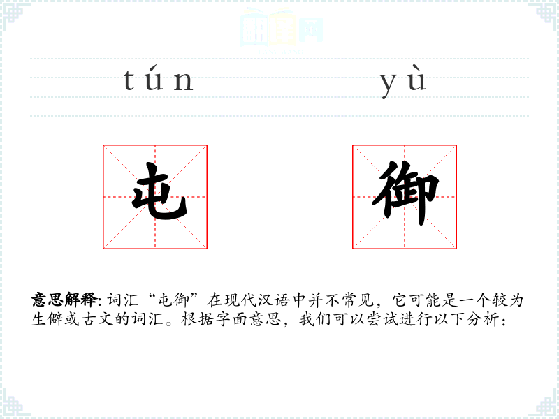 词汇“屯御”在现代汉语中并不常见,它可能是一个较为生僻或古文的词汇。根据字面意思,我们可以尝试进行以下分析:
