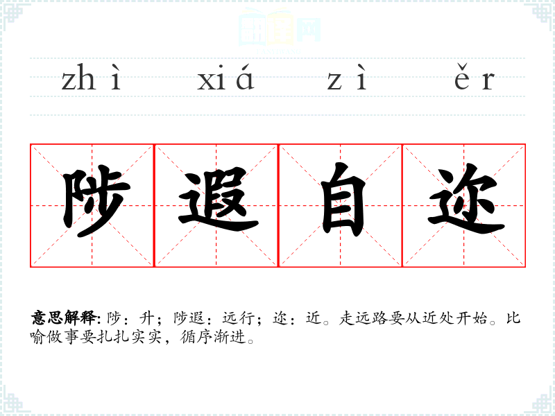 陟:升;陟遐:远行;迩:近。走远路要从近处开始。比喻做事要