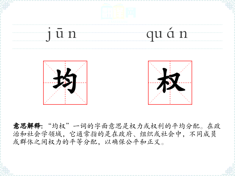 “均权”一词的字面意思是权力或权利的平均分配。在政治和社会学领域,它通常指的是在政府、组织或社会中,不同成员或群体之间权力的平等分配,以确保公平和正义。