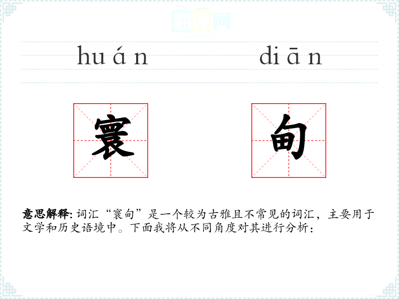 词汇“寰甸”是一个较为古雅且不常见的词汇,主要用于文学和历史语境中。下面我将从不同角度对其进行分析: