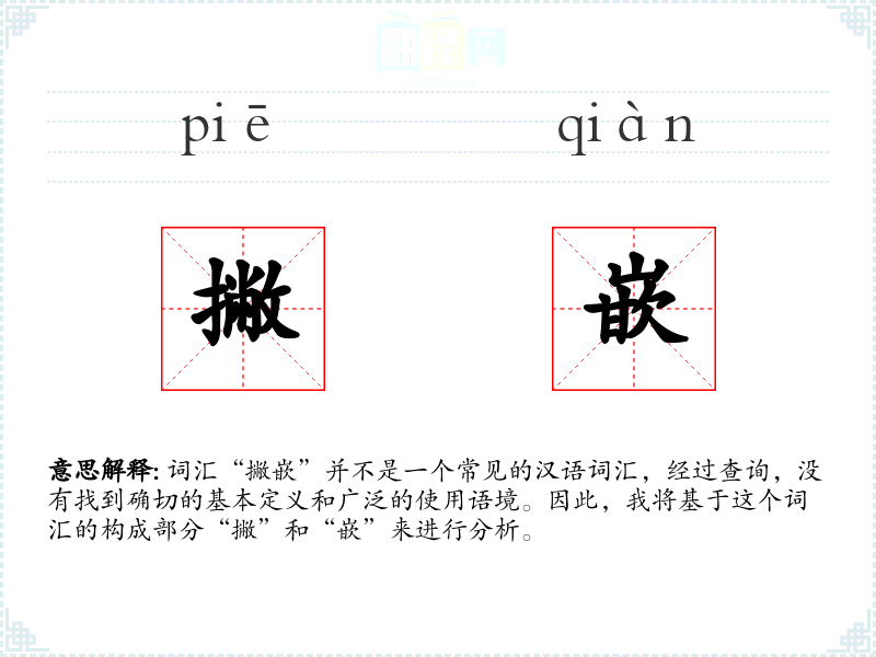 由于“撇嵌”不是一个标准词汇,我们无法探讨其词源和历史演变。
