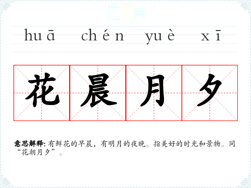 有鲜花的早晨,有明月的夜晚。指美好的时光和景物。同“