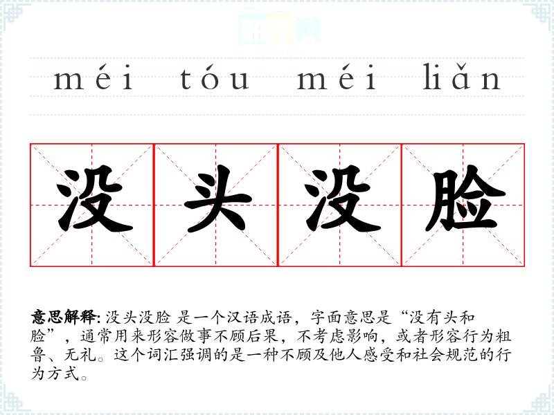 没头没脸 这个词汇在汉语中是一个非常有力的表达,用来批评那些不顾及他人感受和社会规范的行为。它在文学、口语和专业领域都有广泛的应用。了解这个词汇的含义和用法,有助于更好地理解和运用汉语,并在社交互动中保持礼貌和考虑他人感受。