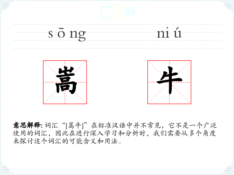由于“[嵩牛]”不是一个标准词汇,我们可以尝试从字面意思来解释: