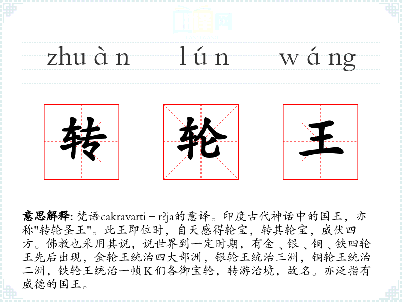 "转轮王"的意思解释、转轮王是什么意思由翻译网汉语词典查词提供。