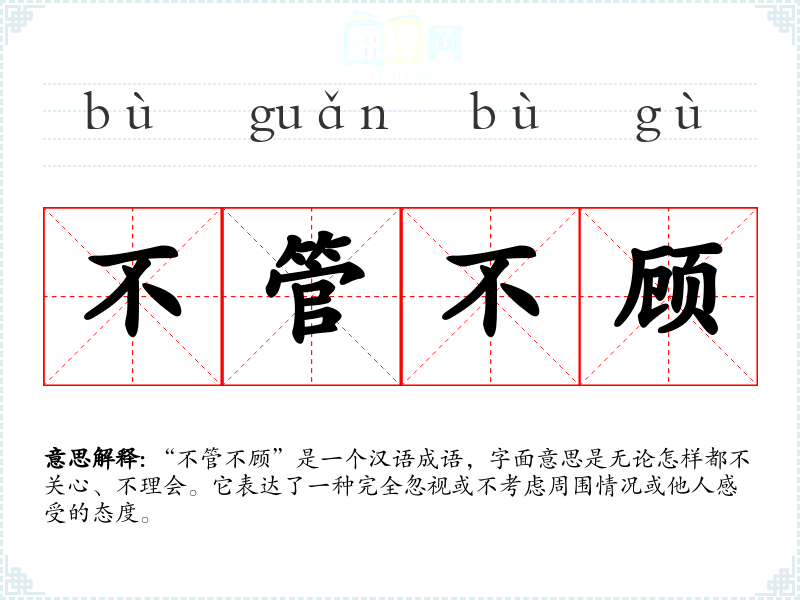 "不管不顾"的意思解释、不管不顾是什么意思由翻译网汉语词典查词提供。
