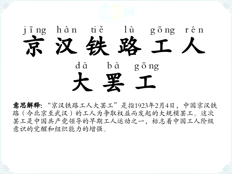 “京汉铁路工人大罢工”这一词汇直接来源于历史**的名称,其词源清晰,演变主要体现在历史研究和文献中对其描述的深入和细化。