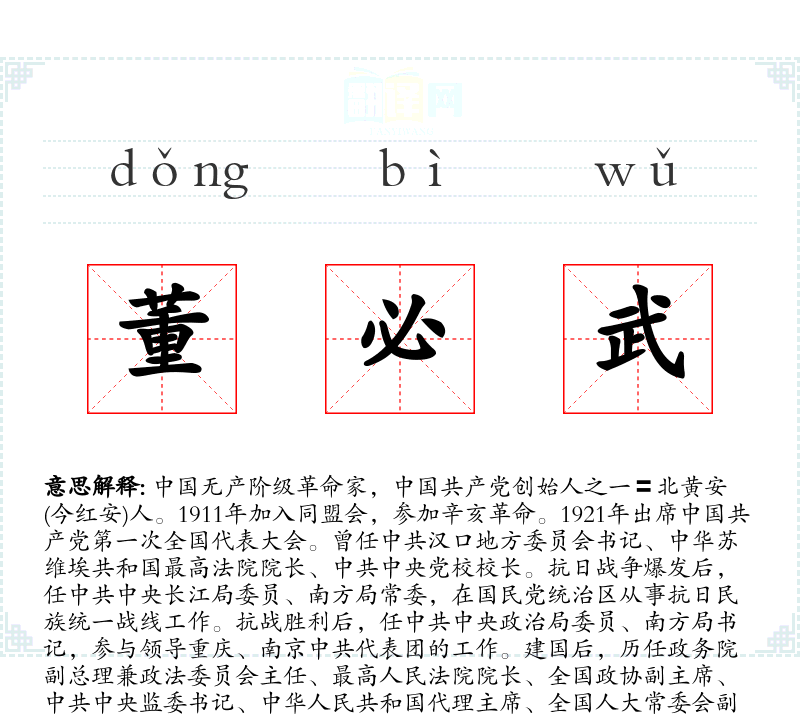 "董必武"的意思解释、董必武是什么意思由翻译网汉语词典查词提供。