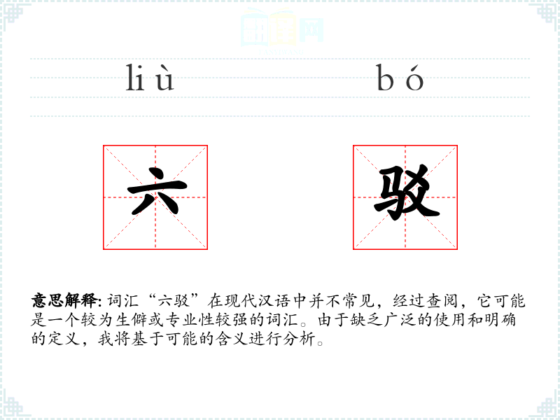 词汇“六驳”在现代汉语中并不常见,经过查阅,它可能是一个较为生僻或专业性较强的词汇。由于缺乏广泛的使用和明确的定义,我将基于可能的含义进行分析。