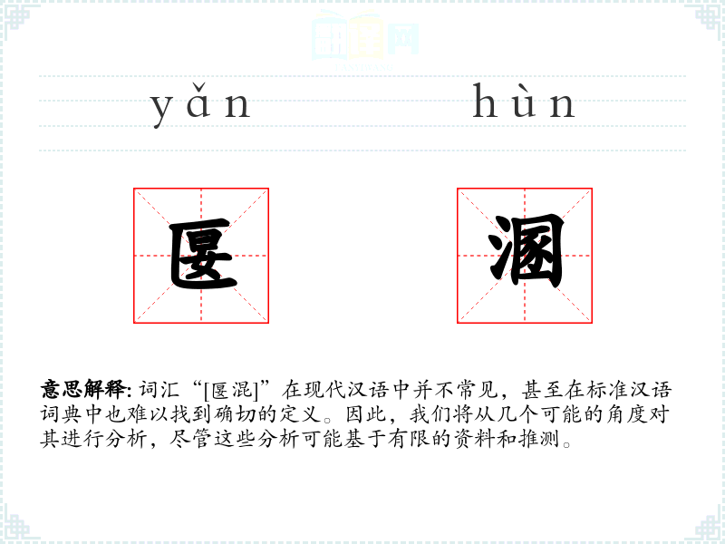 词汇“[匽混]”在现代汉语中并不常见,甚至在标准汉语词典中也难以找到确切的定义。因此,我们将从几个可能的角度对其进行分析,尽管这些分析可能基于有限的资料和推测。