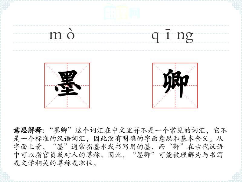 由于“墨卿”不是一个国际通用的词汇,它在不同语言或文化中没有直接的对应词汇。