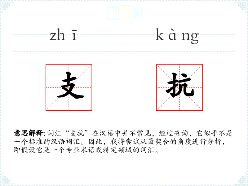 词汇“支抗”在汉语中并不常见,经过查询,它似乎不是一个标准的汉语词汇。因此,我将尝试从最契合的角度进行分析,即假设它是一个专业术语或特定领域的词汇。