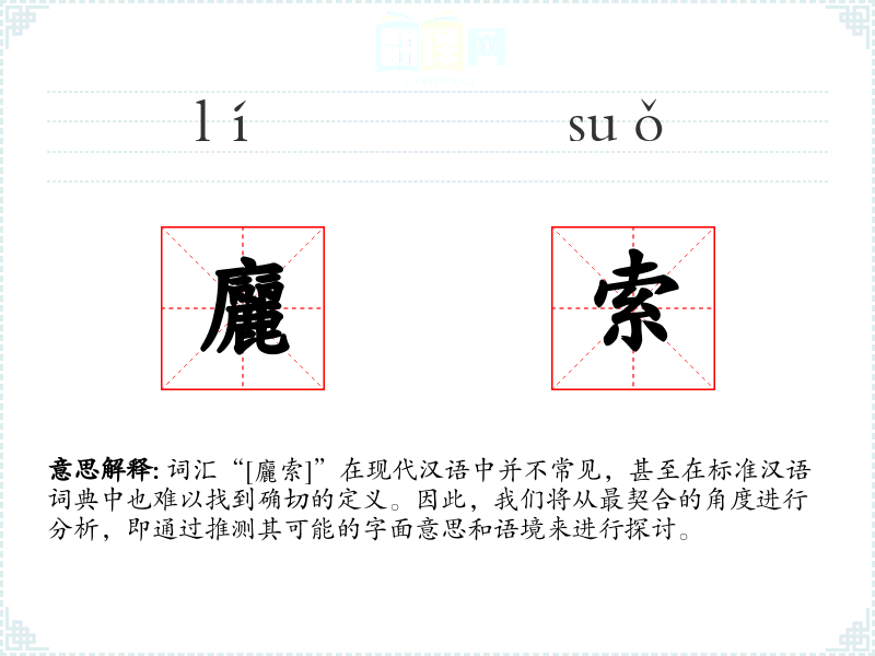 词汇“[廲索]”在现代汉语中并不常见,甚至在标准汉语词典中也难以找到确切的定义。因此,我们将从最契合的角度进行分析,即通过推测其可能的字面意思和语境来进行探讨。