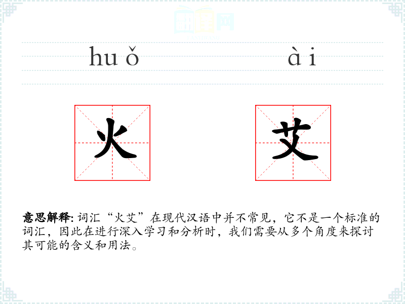 - 反义词:无(由于“火艾”不是一个常用词汇,很难找到直接的反义词)