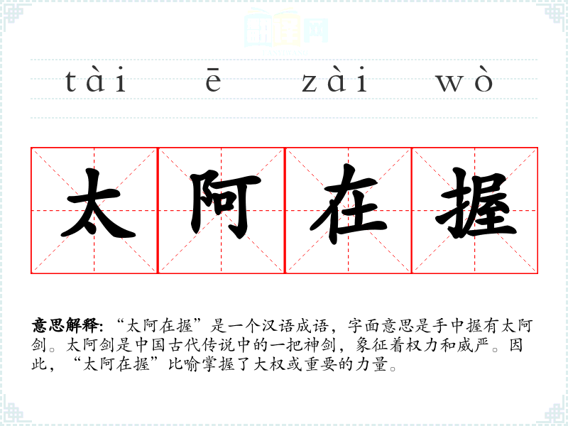 “太阿”源自**古代神话传说中的神剑,最早见于《山海经》等古籍。随着时间的推移,“太阿在握”逐渐演变成一个比喻掌握权力的成语。