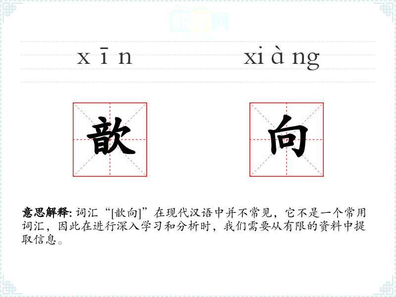 词汇“[歆向]”在现代汉语中并不常见,它不是一个常用词汇,因此在进行深入学习和分析时,我们需要从有限的资料中提取信息。