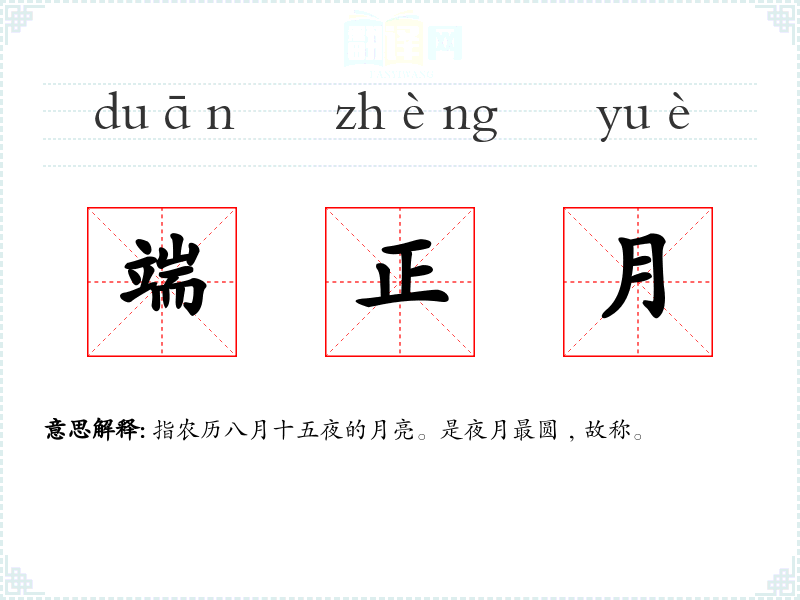 指农历八月十五夜的月亮。是夜月最圆﹐故称。
