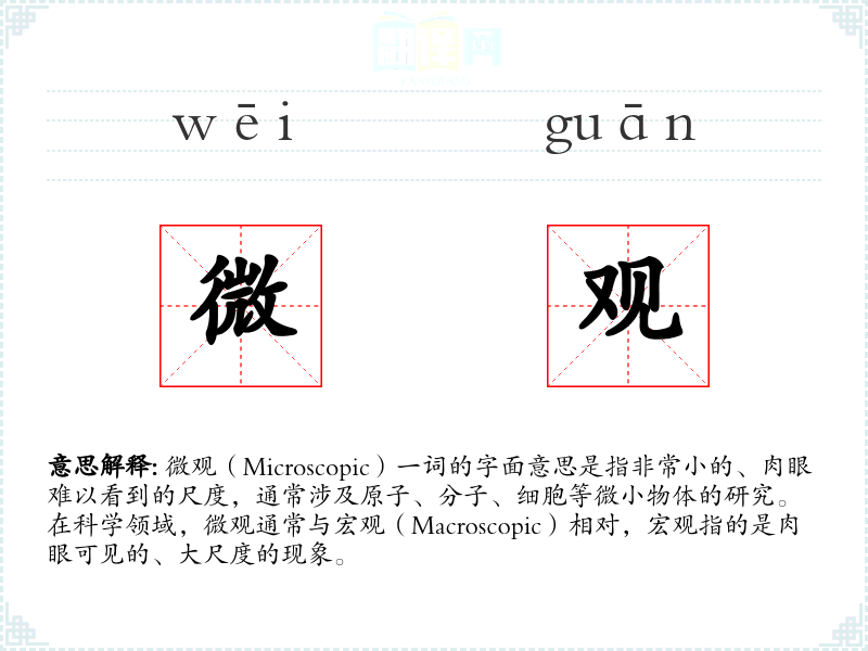 在不同语言中,微观的对应词汇可能有所不同,但其基本含义相似。例如,在德语中,微观对应的词汇是“mikroskopisch”,在法语中是“microscopique”。