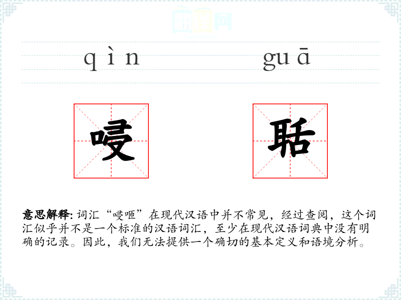 由于“唚咂”不是一个标准的汉语词汇,我们无法提供示例句子、同义词与反义词、词源与演变、文化与社会背景、情感与联想、个人应用、创造性使用、视觉与听觉联想以及跨文化比较等方面的分析。