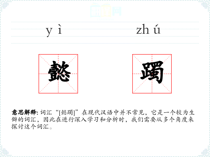 词汇“[懿躅]”在现代汉语中并不常见,它是一个较为生僻的词汇,因此在进行深入学*和分析时,我们需要从多个角度来探讨这个词汇。