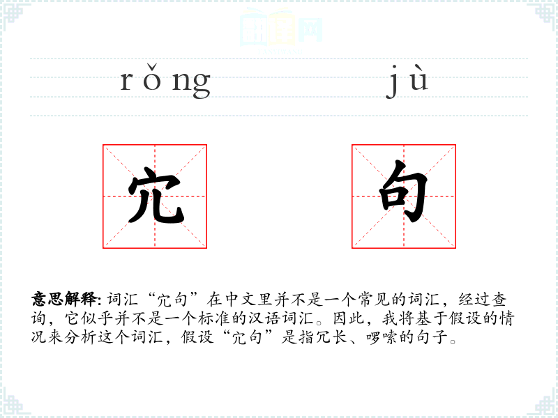 词汇“宂句”在中文里并不是一个常见的词汇,经过查询,它似乎并不是一个标准的汉语词汇。因此,我将基于假设的情况来分析这个词汇,假设“宂句”是指冗长、啰嗦的句子。