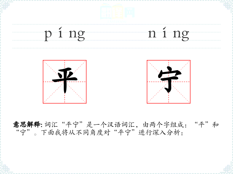 词汇“平宁”是一个汉语词汇,由两个字组成:“平”和“宁”。下面我将从不同角度对“平宁”进行深入分析: