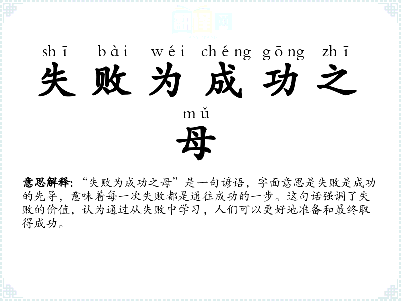"失败为成功之母"的意思解释、失败为成功之母是什么意思由翻译网汉语词典查词提供。