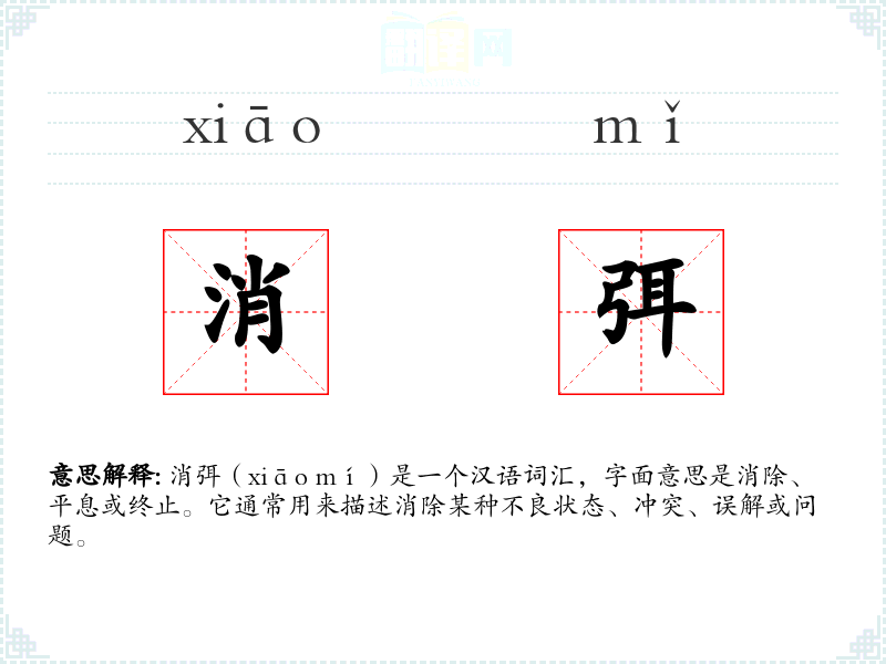 消弭(xiāo mí)是一个汉语词汇,字面意思是消除、平息或终止。它通常用来描述消除某种不良状态、冲突、误解或问题。