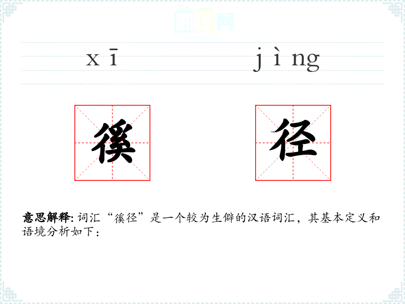 词汇“徯径”是一个较为生僻的汉语词汇,其基本定义和语境分析如下: