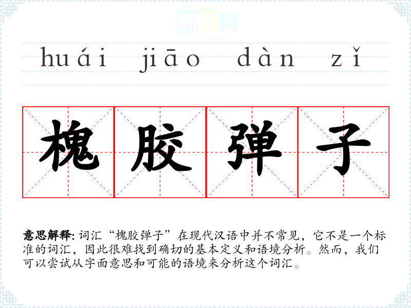 词汇“槐胶弹子”在现代汉语中并不常见,它不是一个标准的词汇,因此很难找到确切的基本定义和语境分析。然而,我们可以尝试从字面意思和可能的语境来分析这个词汇。