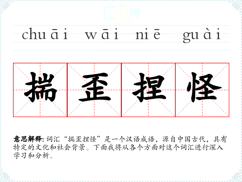 词汇“揣歪捏怪”是一个汉语成语,源自*古代,具有特定的文化和社会背景。下面我将从各个方面对这个词汇进行深入学和分析。