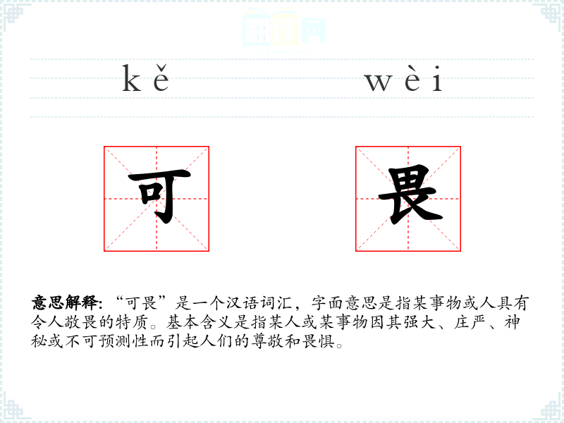 - 文学:在文学作品中,“可畏”常用来形容自然景观、历史**或人物性格,如“那座古老的城堡,在夜色中显得格外可畏”。