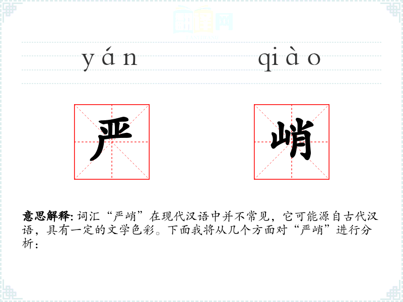 词汇“严峭”在现代汉语中并不常见,它可能源自古代汉语,具有一定的文学色彩。下面我将从几个方面对“严峭”进行分析: