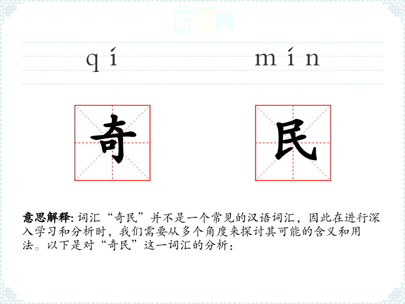 词汇“奇民”并不是一个常见的汉语词汇,因此在进行深入学习和分析时,我们需要从多个角度来探讨其可能的含义和用法。以下是对“奇民”这一词汇的分析: