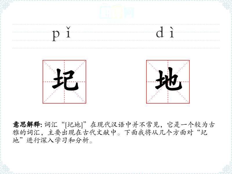 词汇“[圮地]”在现代汉语中并不常见,它是一个较为古雅的词汇,主要出现在古代文献中。下面我将从几个方面对“圮地”进行深入学*和分析。