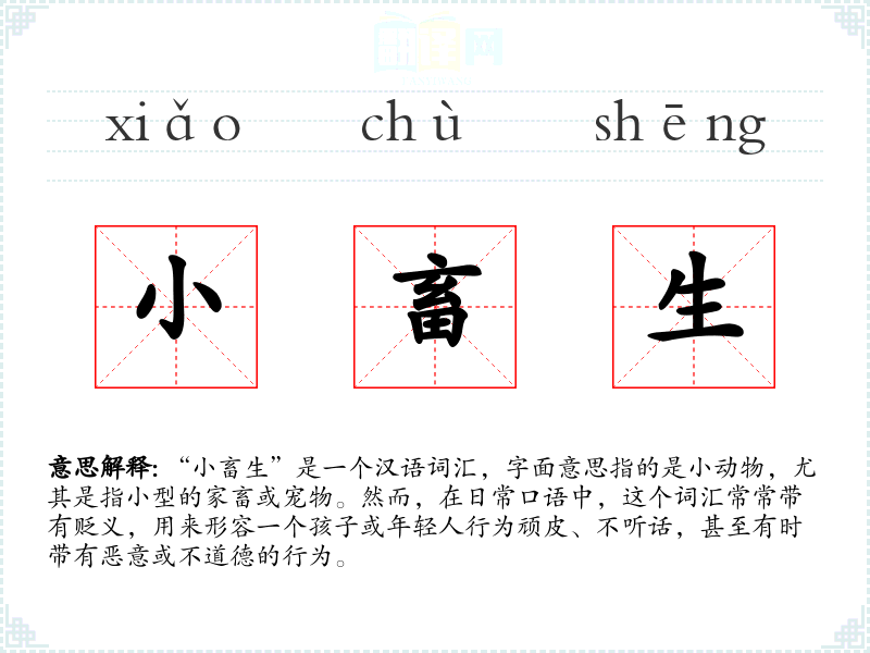 “小畜生”一词的词源较为直接,由“小”和“畜生”组成。在古代汉语中,“畜生”指的是家畜,后来逐渐演变为对人的贬义称呼。随着时间的推移,“小畜生”也被用来形容孩子的不良行为。