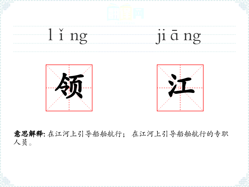 在江河上引导船舶航行; 在江河上引导船舶航行的专职人员。