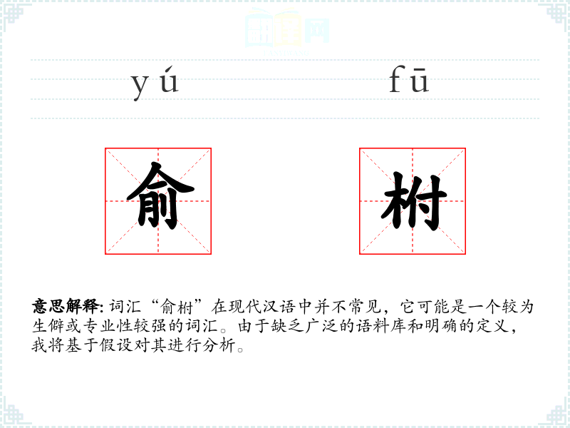 词汇“俞柎”在现代汉语中并不常见,它可能是一个较为生僻或专业性较强的词汇。由于缺乏广泛的语料库和明确的定义,我将基于假设对其进行分析。