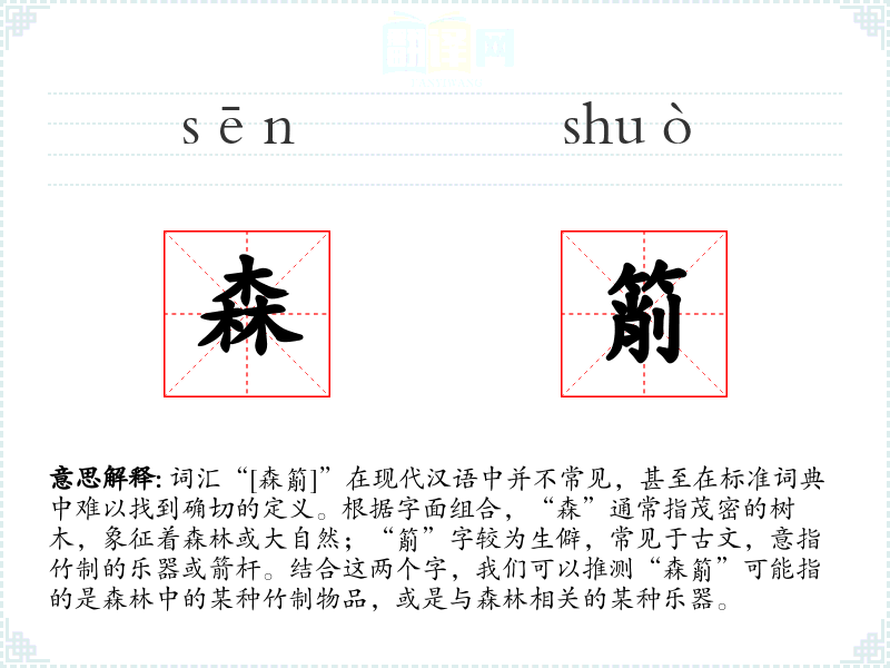 "森箾"的意思解释、森箾是什么意思由翻译网汉语词典查词提供。