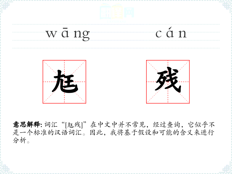 词汇“[尪残]”在中文中并不常见,经过查询,它似乎不是一个标准的汉语词汇。因此,我将基于假设和可能的含义来进行分析。