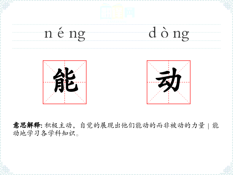 积极主动,自觉的展现出他们能动的而非被动的力量|能动地学习各学科知识。