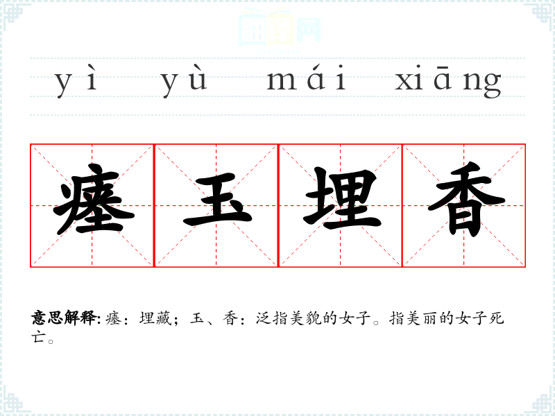 瘗:埋藏;玉、香:泛指美貌的女子。指美丽的女子死亡。