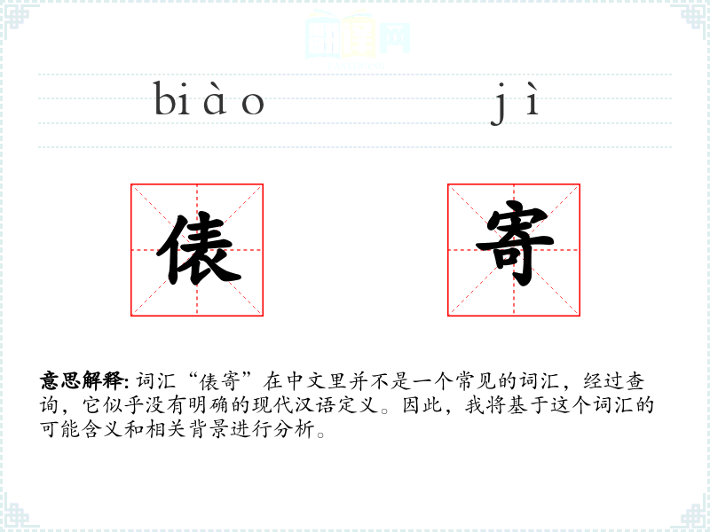 由于“俵寄”不是一个标准词汇,我们无法给出一个确切的字面意思和基本含义。它可能是某个方言词汇或者是古汉语中的一个词,但在现代汉语中并不常用。
