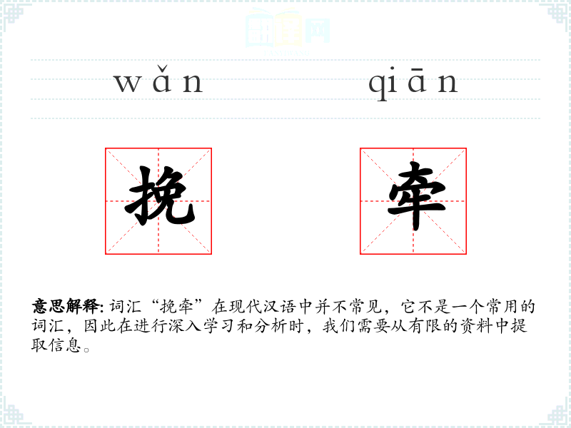 词汇“挽牵”在现代汉语中并不常见,它不是一个常用的词汇,因此在进行深入学*和分析时,我们需要从有限的资料中提取信息。