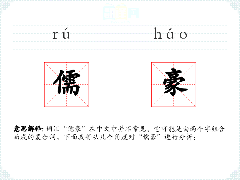 - 词源:“儒”源自儒家学派,“豪”源自豪放、豪迈之意。