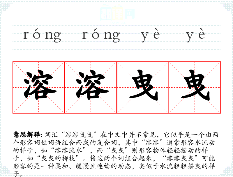 - “溶溶曳曳”是一个富有诗意的词汇,能够为描述增添细腻和美感。在语言学习和表达中,适当运用这样的词汇可以提升表达的丰富性和艺术性。
