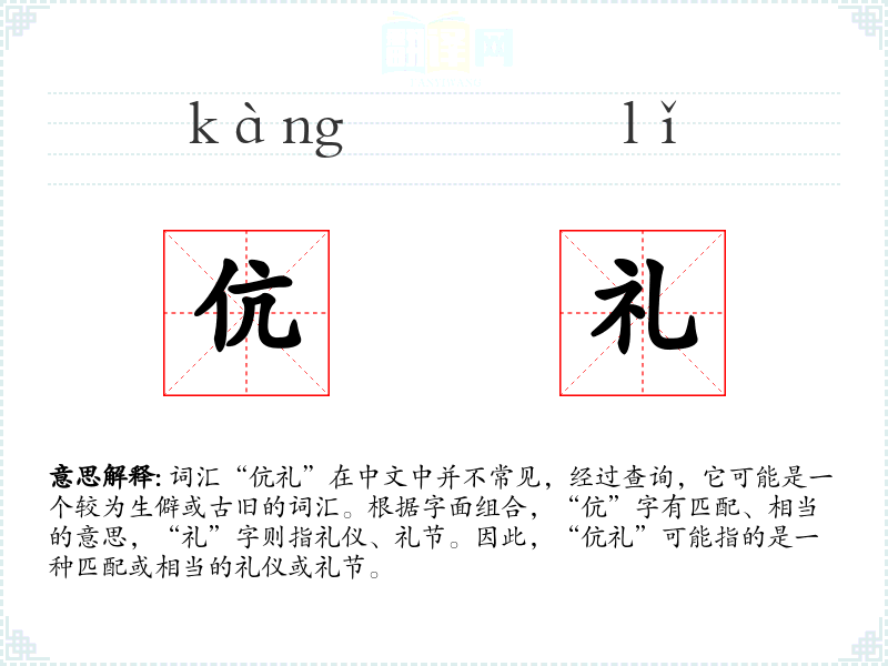 - 理解:“伉礼”是一个具有特定历史文化背景的词汇,虽然在现代使用较少,但在研究古代礼仪和文化时具有一定的价值。